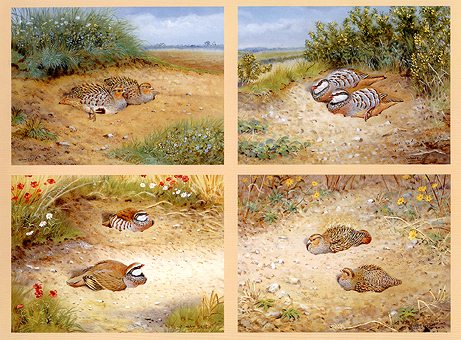 Plate 24 Dusting - Grey and Red-legged Partridges