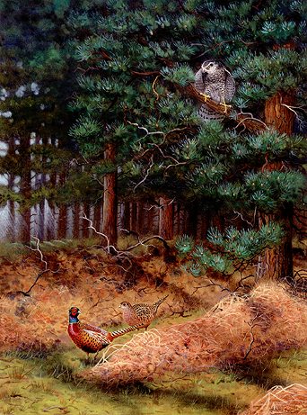Plate 14 Imminent danger - goshawk and pheasants