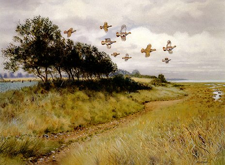 Plate 7 Partridges over Stiffkey Marshes - Cocklestrand Drift Drive, Holkham