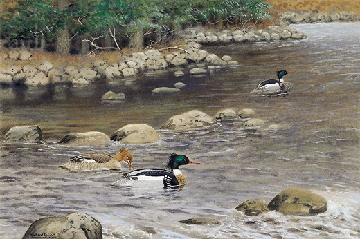 Plate 18 Red-breasted Mergansers on a Scottish river